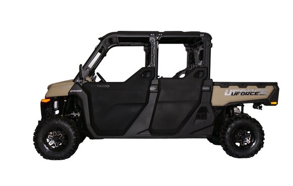 На основании отзывов клиентов флагманская модель UFORCE 1000 EPS была модернизирована так, чтобы создать идеальный 6-местный мотовездеход. UFORCE 1000 XL EPS представляет собой новый уровень комфорта, возможностей и грузоподъёмности! Он обладает множеством преимуществ, в том числе впечатляющей грузоподъемностью и вместительностью, максимально расширяя возможности как для работы, так и для активного отдыха всей семьёй.Мотовездеход UFORCE 1000 XL EPS оснащен мощным и надёжным V-образным 2-цилиндровым двигателем объемом 963 куб. см. Продуманная конструкция и высокая мощность делают мотовездеход UFORCE 1000 XL одним из лучших в своем классе! UFORCE 1000 XL — самый большой мотовездеход из всей линейки CFMOTO, но его габариты не снижают буксировочную способность: мотовездеход способен тянуть прицеп массой до 1134 кг. Вместительная откидная багажная платформа имеет грузоподъемность 350 кг. Этот мотовездеход выглядит надежным и прочным, гарантируя достаточно места не только для груза, но и для пассажиров. Благодаря двухрядной конфигурации сидений «3+3» в салоне легко помещаются шесть человек. UFORCE 1000 XL — это идеальный выбор мотовездехода для любых задач!На UFORCE 1000 XL EPS допускается выезд на дороги общего пользования. Дополнительные преимущества:– Вместимость: 6 человек