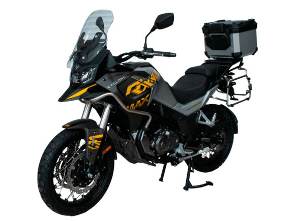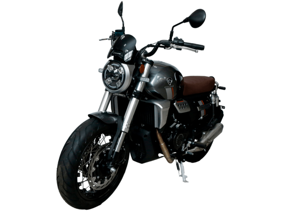 Мотоцикл CYCLONE AQS401 AMT – современный мощный круизёр с автоматической трансмиссией. Позволяет не отвлекаться на переключение передач и обеспечивает высокий комфорт во время поездок.На мотоцикл установлен 2-цилиндровый 4-тактный двигатель объёмом 401 см³ с 4 клапанами на каждом цилиндре и жидкостной системой охлаждения. Двигатель способен обеспечить мощность до 45 л.с. и разгонять мотоцикл до 155 км/ч.Благодаря автоматической коробке передач CYCLONE AQS401 AMT станет отличным выбором для тех, кто хочет поездок на круизёре без лишних усилий. Объём топливного бака 17 литров.Подвеска представлена классической телескопической вилкой спереди и 2 пружинно-гидравлическими амортизаторами сзади. Такая конфигурация даёт сбалансированную управляемость и комфорт при движении по неровностям.Передний тормоз от J.JUAN (BREMBO) оборудован 2-поршневым суппортом, а сзади используется однопоршневой суппорт с плавающей скобой. На мотоцикл установлены системы ABS и TCS, повышающие устойчивость и безопасность во время поездок.Диаметр колёс 17 дюймов, колёсная база 1480 мм. Высота по седлу 730 мм. Вес 185 кг. Имеется USB-порт для зарядки устройств.