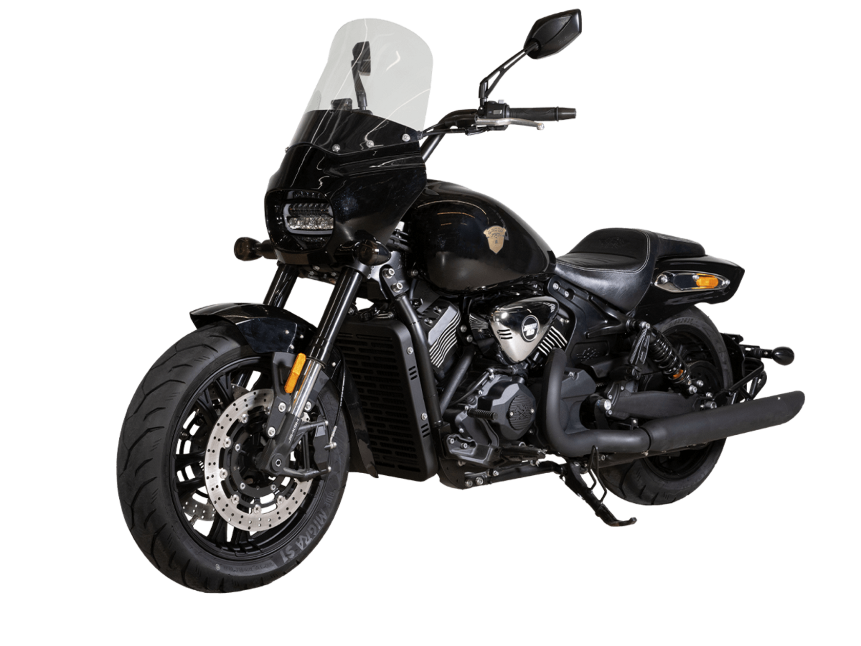 GROZA RL800 – шикарный круизёр, который подойдёт как для повседневной городской езды, так и для комфортного перемещения на длинные дистанции. Его дизайн исполнен в классическом стиле, соответствующем всем канонам данного типа мотоциклов.Двухцилиндровый V-образный двигатель объёмом 800 см3 мощностью 61 л.с. при высоких показателях динамики и отличном крутящем моменте способен разгонять аппарат до 160 км/ч. Инжекторный впрыск топлива с инжектором DELPHI увеличивает топливную экономичность, а также позволяет добиться высокой приёмистости и неприхотливости агрегата. Привод на ведущее колесо осуществляется ремнём знаменитой марки USA Gates. Жидкостная система охлаждения не допустит перегрева мотора даже при самом агрессивном вождении.RL800 имеет 6-ступенчатую механическую коробку передач с классической схемой “1-N-2-3-4-5-6”. На мотоцикл установлены литые алюминиевые диски диаметром 17 дюймов. Ширина передней покрышки – 140 мм, задней – 200 мм. С неровностями дороги эффективно справляются телескопическая вилка перевёрнутого типа спереди и маятник с двумя газонаполненными амортизаторами сзади. Подвеска имеет 7 ступеней регулировки, что обеспечивает лёгкую перестройку на различные режимы езды. Для всего класса круизёров такая опция – большая редкость. Эффективное и безопасное замедление с любых скоростей обеспечивают гидравлические дисковые тормоза спереди и сзади от компании NISSIN.Аппарат оснащён своеобразной и очень привлекательной по дизайну светодиодной оптикой, а также бортовым компьютером и ярким и информативным дисплеем.Мотоцикл сочетает в себе отличные технические характеристики, богатое оснащение, комфорт и надёжность, что позволяет вам ощутить настоящую свободу на любой дороге.
