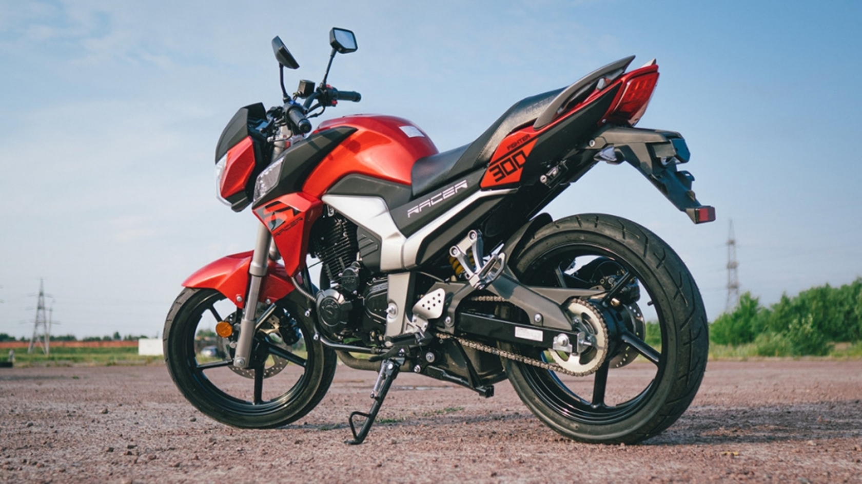 Мотоцикл Racer RC300CK-N Fighter - дорожный мотоцикл, в первую очередь ориентированный на начинающих байкеров. Отличается легкостью в управлении и сравнительно доступной ценой. 270-ти кубовый двигатель выдает 20 л.с. мощности, чего более чем достаточно для маневрирования в городских пробках. Мотоцикл получил новую 5-ти ступенчатую коробку передач, благодаря которой он стал более резвым и динамичным. Моноамортизатор обеспечивает необходимую жесткость задней подвески. Средней жесткости надежная передняя телескопическая вилка.Торможение контролируемо и эффективно благодаря двухпоршневому суппорту дискового тормоза. Посадка удобна, а электронная панель приборов с индикатором включенной передачи легко читается. Оптика выполнена из ударопрочного пластика, а задний фонарь имеет яркие LED светодиоды. Вместительный топливный бак обеспечивает хороший запас хода.