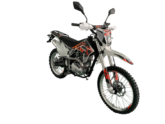 KAYO K6-A 300 MX – новинка в линейке эндуро мотоциклов. Это первый полноразмерный эндуро семейства KAYO с воздушным охлаждением. Создан для тех, кто ищет неприхотливый и выносливый мотоцикл для экстремальных условий офф-роуда и горных трасс.Модель оснащена одноцилиндровым 4-тактным двигателем 175FMN CB300RL с 4 клапанами и балансирным валом объёмом 271 см³ и мощностью 27 л.с. Запуск осуществляется с помощью электростартера. Карбюратор NIBBI PWK34 отвечает за стабильную работу даже при высоких нагрузках. Чтобы контролировать время работы техники, приборная панель оснащена счётчиком моточасов. Механическая коробка передач имеет 5 ступеней.Ходовая часть включает переднюю подвеску KAYO Racing Performance (KRP), произведённую компанией KKE специально для KAYO, с ходом 940 мм и задний моноамортизатор с ходом 480 мм. Оба компонента оснащены полным набором регулировок. Это позволяет настроить мотоцикл под конкретные условия и стиль вождения, чтобы езда по неровностям была более плавной и устойчивой.Классические спицованные колёса с алюминиевыми дисками и шины YUANXING диаметром 18 и 21 дюйм создают крепкий зацеп с поверхностью. Передние и задние дисковые тормоза гарантируют безопасность и контроль над скоростью. Пластиковая защита тормозных дисков повышает долговечность системы.Благодаря передней LED-фаре управление становится возможным даже в тёмное время суток.KAYO K6-A 300 MX – выбор тех, кому нужен производительный, лёгкий в обслуживании и надёжный мотоцикл для активного отдыха и спорта. Подойдёт и новичкам, и опытным гонщикам.Комплектация и внешний вид мотоцикла могут отличаться в зависимости от поставки. Изображение на сайте не гарантирует наличие тех или иных опций. Уточняйте информацию при оформлении заказа.