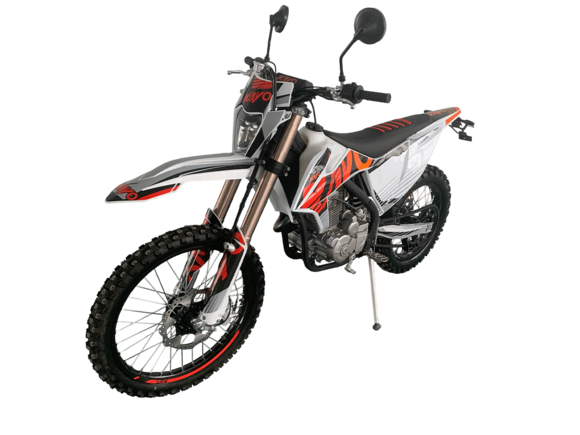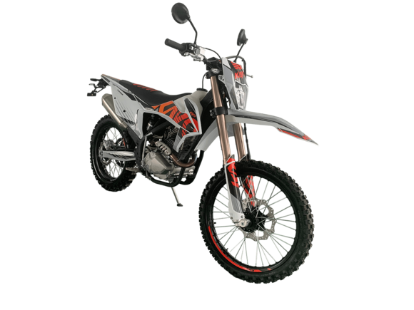 Мотоцикл KAYO K1 250 MX – “народная” версия внедорожного мотоцикла от компании KAYO. Идеальный снаряд для внедорожного экстрима, представляющий собой оптимальный баланс производительности и технической оснащённости, поэтому он идеально подходит как новичкам, так и опытным райдерам. Удобный, простой и надёжный мотоцикл, который полностью оправдывает свою цену.Мотоцикл оснащён одноцилиндровым 4-тактным двигателем воздушного охлаждения (ZONGSHEN ZS172FMM) объёмом 249 см3, который обеспечивает высокую мощность (21 л.с.) и крутящий момент, что позволяет развивать большую скорость и с лёгкостью преодолевать трассы со сложным рельефом. Карбюраторная система подачи топлива с карбюратором NIBBI PE30 обеспечивает бесперебойную работу техники в самых жёстких условиях эксплуатации, простоту и лёгкость в обслуживании, а также неприхотливость к качеству топлива. Аппарат оснащён 5-ступенчатой механической коробкой передач с классической схемой “1-N-2-3-4-5”.Усиленная рама из хром-молибденового сплава и подвеска позволяют эффективно амортизировать удары при езде по неровностям и препятствиям на трассе. Передняя подвеска телескопическая вилка перевёрнутого типа от фирмы KKE длиной 800 мм, задняя — нерегулируемый моноамортизатор 360 мм, рассчитанный на высокие нагрузки до 900 LBS, также произведённый компанией KKE. Мотоцикл оснащён классическими спицованными колёсами диаметром 18 и 21 дюйм. Колёса имеют усиленные обода из алюминиевого сплава и буксаторы. Эффективное и безопасное замедление с любых скоростей обеспечивают гидравлические дисковые тормоза.Мотоцикл достаточно компактен и имеет вес всего в 105 кг, поэтому он комфортен в эксплуатации одновременно и для мужчин среднего телосложения, и для девушек. Аппарат оснащён системой запуска двигателя при помощи кнопки электростартера или при помощи рычага кик-стартера.Высококачественная износостойкая резина с развитым протектором отлично держит дорогу на различных типах покрытия и в самых разных поворотах. Сиденье эргономичной формы покрыто антискользящим материалом.K1 250 MX сочетает в себе отличные технические характеристики, комфорт и надёжность, что позволяет вам ощутить настоящую свободу на любой трассе