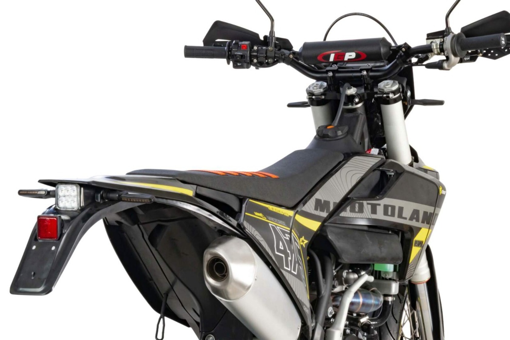 Мотоцикл MOTOLAND 500 XT500 ST 17/17 (мотард) это полноценный «заряженный» кроссовый мотоцикл, но на шоссейной резине. Имеет хорошую проходимость и тяговую мощность за счет установленного 4х тактного двигателя LONCIN 267 MR с рабочим объёмом 500 см³, мощностью 48 л.с. и карбюратором Nibbi 38. Идеален для езды по дорогам общественного пользования, т. к. его сликовые 17 дюймовые шины (110-70) и (140-70) просто созданы для езды по среднему и твердому грунту.Мотоцикл относится к топовой линейке мотоциклов MOTOLAND. Передняя подвеска FASTACE - картриджная(закрытого типа), обеспечивает лучшее качество демпфирования (лучше отрабатывает препятствия) по сравнению с обычными вилками, с зади так же установлен амортизатор FASTACE, с увеличенным выносным бачком, позволяющий настраивать подвеску под разные условия эксплуатации. Ступицы из фрезерованного алюминия обладают высоким сопротивлением к нагрузкам. Большое количество аллюминиевых деталей позволило значительно снизить его вес, который составляет всего 125 кг.