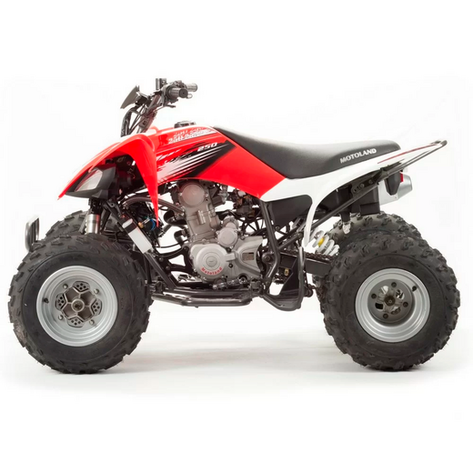 Motoland ATV 250 S - спортивный квадроцикл, оборудованный мощным двигателем 250 см3 с жидкостным охлаждением. Мощная конструкция рамы, регулируемые подвески, удачная компоновка сделали его универсальным вездеходом, как для кроссовых трасс, так и для внедорожных поездок по пересеченной местности.