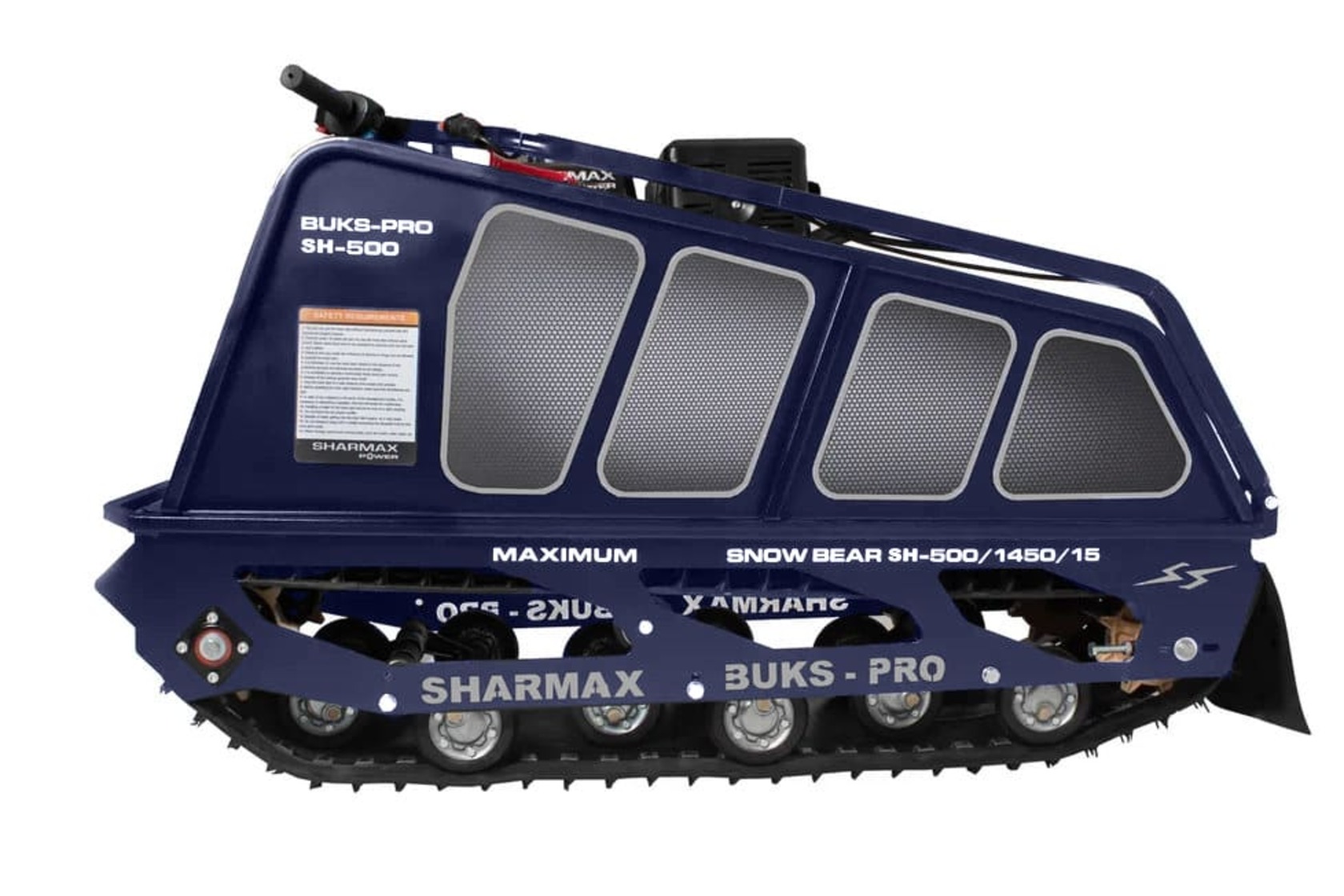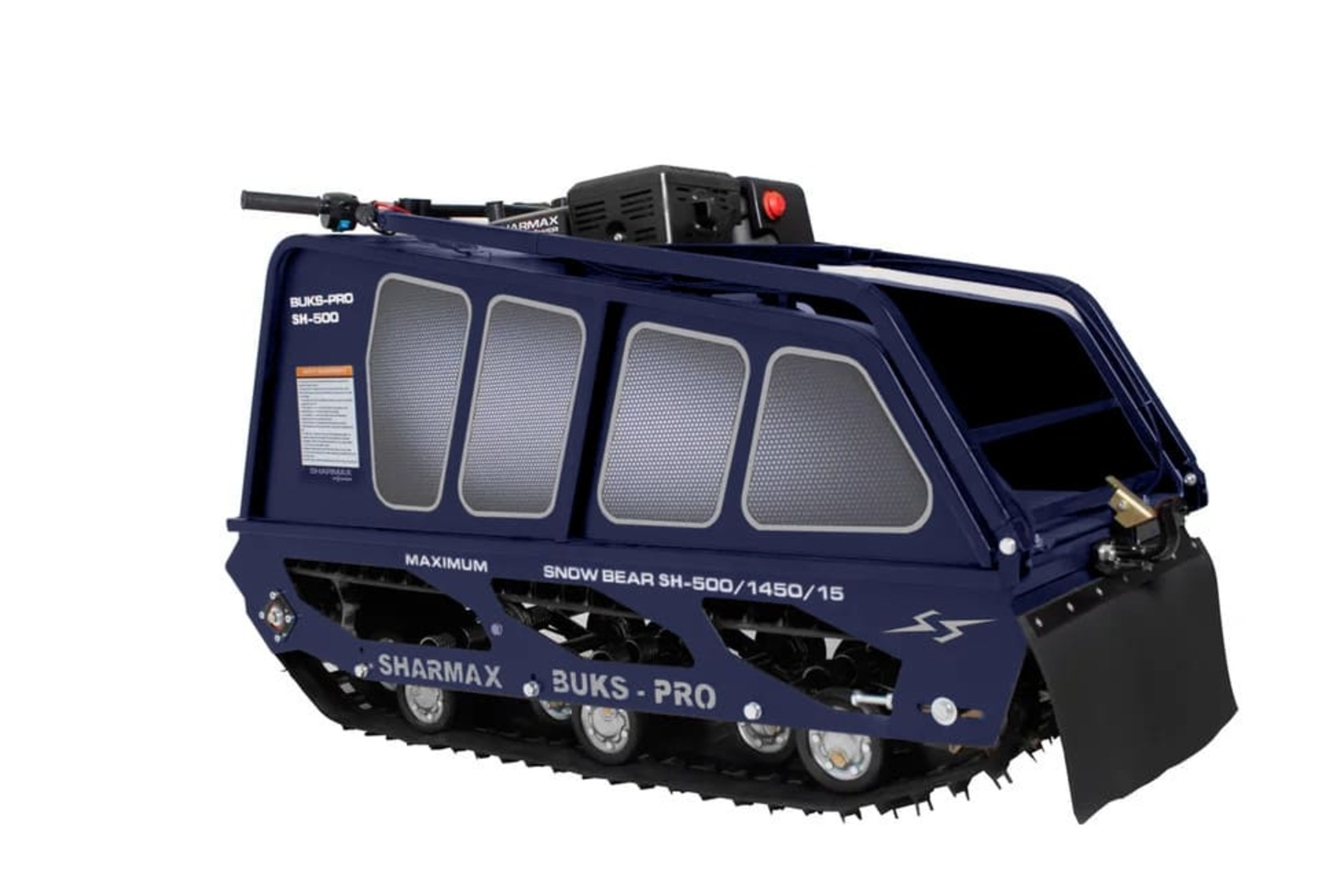 Мотобуксировщик SNOWBEAR S500 1450 HP15 MAXIMUM настоящий помощник на охоте и рыбалке, решит множество задач в сельскохозяйственной деятельности. Идеальное сочетание цены и качества.Гусеница мотобуксировщиков “Sharmax” шириной 500 мм является надежной и универсальной. Обладает повышенной стойкостью к износу, а специальная форма протектора дает отличное сцепление с поверхностью, при этом сохраняя уверенную маневренность мотобуксировщика.