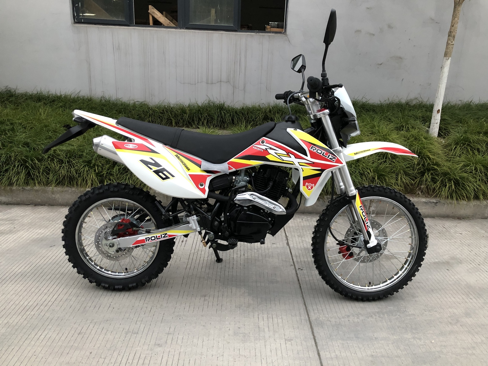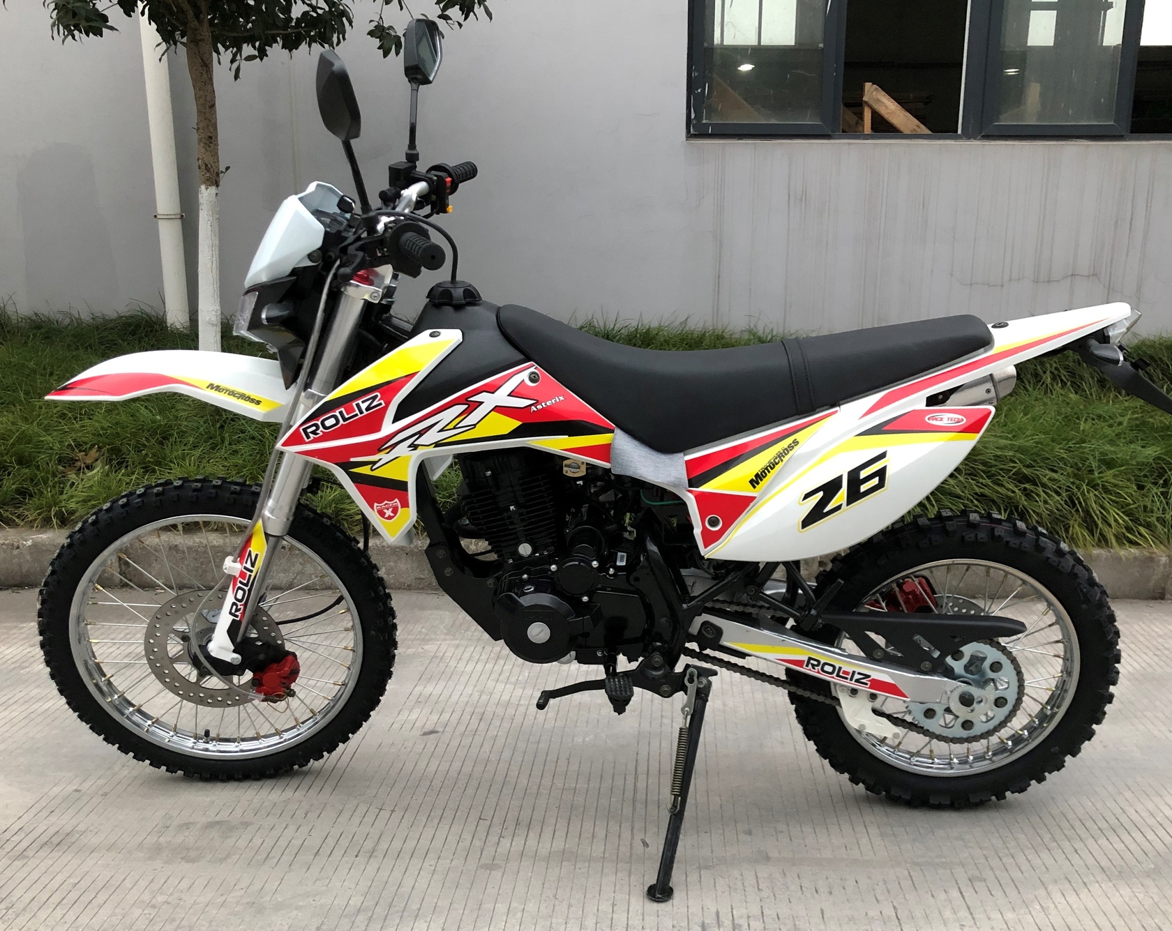 Эконика ASTERIX – новый внедорожный мотоцикл. Его стоимость значительно ниже брендовых моделей со схожими характеристиками, но качество сборки в целом, как и отдельных деталей, отличное. В стальной раме с баком 5,7 литров установлен четырехтактный одноцилиндровый двигатель 150сс с механической коробкой передач и воздушным охлаждением. Для удобства запуска мотора предусмотрен электростартер.Мотоцикл оснащен фарой головного света, что является необходимым условием для езды в сумерках и темноте, и LED указатели поворота. У нас Вы можете купить этот мотоцикл с бесплатной доставкой по РФ и гарантией до года. Также его можно приобрести в рассрочку или в кредит.