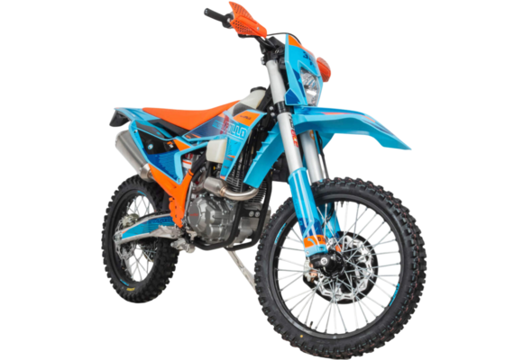 • Отсутствие ПТС подчёркивает специализацию модели: это чистый кросс/эндуро, предназначенный для треков, лесов и полей, а не для городских дорог.