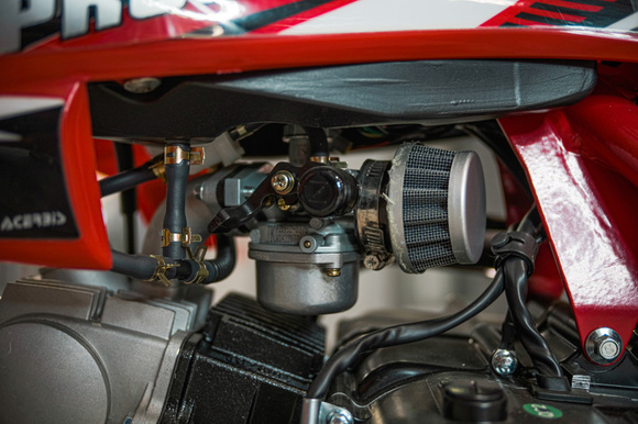 • Надежный 4-тактный мотор 125cc: Мощности в 8 л.с. хватит для обучения трюкам, покорения грунтовых трасс и уверенного драйва. Карбюратор Mikuni обеспечивает стабильную работу и легкую настройку.